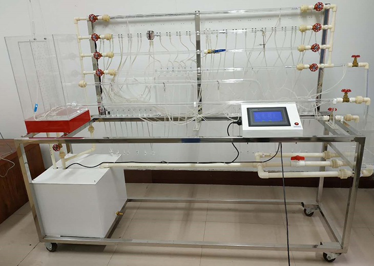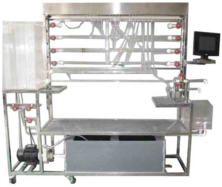 移動式不銹鋼實(shí)驗(yàn)臺、儲水箱;雷諾測試管;伯努利測試管;沿程阻力系數(shù)測試管;突擴(kuò)、突縮測試管;閥門局部阻力系數(shù)測試管;孔板流量計(jì)測試管;文丘里流量計(jì)測試管;和皮托管測試管;測壓板直接顯示總水頭線和測壓管水頭線;壓力傳感器24套、流量傳感器4套、溫度傳感器1套、觸摸屏、測壓板。