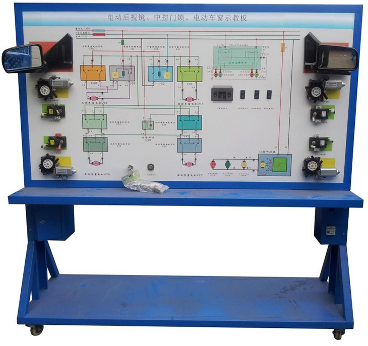 3.示教板面板采用4mm厚耐腐蝕、耐創(chuàng)擊、耐污染、防火、防潮的高級鋁塑板,表面經(jīng)特殊工藝噴涂底漆處理;面板打印有永不褪色的彩色電路圖;學(xué)員可直觀對照電路圖和實(shí)物,認(rèn)識和分析汽車電動窗、中控門鎖系統(tǒng)的工作原理。