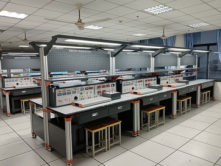 電路數(shù)電模電實(shí)驗(yàn)平臺、模擬電路實(shí)驗(yàn)實(shí)訓(xùn)室設(shè)備作為基礎(chǔ)實(shí)驗(yàn)室,可承擔(dān)電子系、通信系和自動(dòng)化系相關(guān)專業(yè)的《模擬電路》、《高頻電路》、《電子測量》等課程的所有實(shí)驗(yàn)及仿真,以及電子和通信類專業(yè)綜合課程實(shí)訓(xùn)、畢業(yè)論文(設(shè)計(jì))等。電路數(shù)電模電實(shí)驗(yàn)平臺主要培養(yǎng)了學(xué)生的專業(yè)基礎(chǔ)知識素養(yǎng),提高了學(xué)生的實(shí)驗(yàn)?zāi)芰蛻?yīng)用能力,并為教師教學(xué)創(chuàng)新、本科生畢業(yè)設(shè)計(jì)等提供了有利條件。